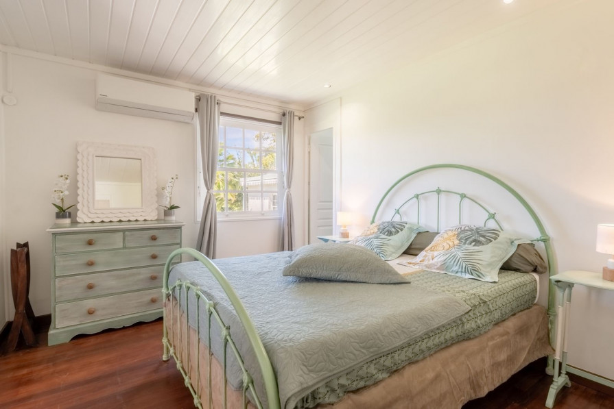 deux chambres, une salle d'eau, WC, avec une dépendance consistant en une chambre avec salle d'eau et mezzanine, une chambre avec salle d' eau, une buanderie. Une piscine. Un accès direct sur la plage. Honoraires TTC charge vendeur.
